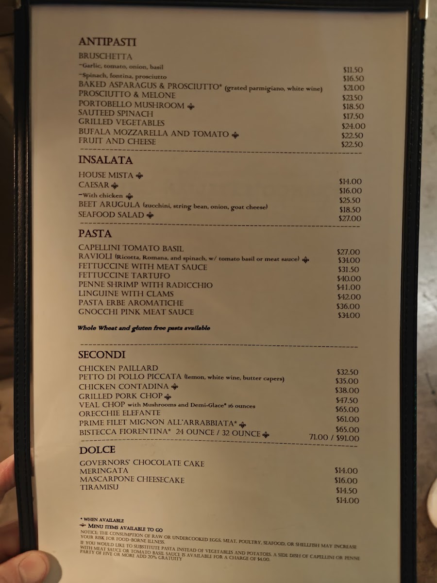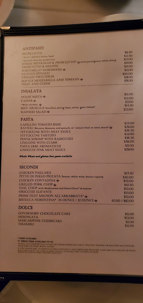 The menu boasts a delightful array of Antipasti like Baked Asparagus and Prosciutto and Buffala Mozzarella with Tomato, each offering a perfect appetizer to start your meal. For those craving a fresh touch, the Insalata selection features vibrant options like House Mista and Caesar.